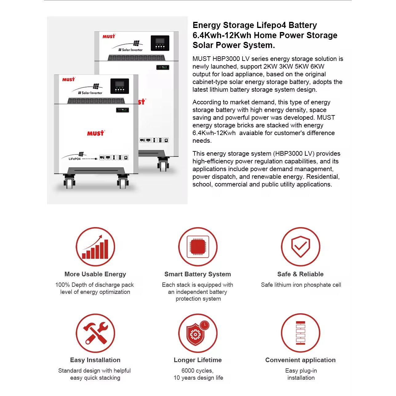 MUST Lithium IRON Phosphate Battery (LiFePO4) LP16-24200, 25.6V, 200AH